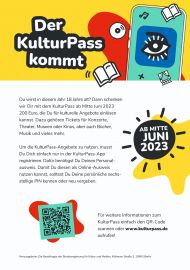 Den Kulturpass können im Online-Verfahren alle beantragen, die dieses Jahr 18 werden. Er umfasst ein Budget in Höhe von 200,00 € für viele Kulturangebote.