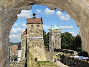 Die Burg Stolpen ist eine Abschnittsburg mit unterer und oberer Vorburg, sowie vorderer und hinterer Hauptburg. Jeder Abschnitt war separat zu verteidigen. Ihre heutige Erscheinung entstand als frühneuzeitliche Wehranlage zum Ende der Burgenzeit. Hauptbaumaterial war der örtliche sehr harte Basalt, baugeschichtlich eine Besonderheit. Die hochgotische Anlage der Bischöfe erfuhr unter den Kurfürsten einen Renaissanceumbau. Im Seigerturm haben sich in zwei Zimmern originale Ausmalungen des Hofmalers Heinrich Göding aus dieser Zeit erhalten.