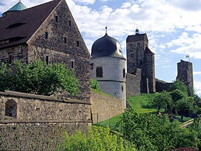 Das Burgmuseum betrachtet das Baudenkmal Burg Stolpen als erstes Exponat. Der gesamte Außenbereich kann durchlaufen werden. Der Rundgang beginnt in den jüngsten Teilen der Veste, den neuzeitlichen Festungswerken mit dem Torhaus. Die Kornhausdurchfahrt gibt den Blick auf das Hauptportal frei. Nun dominieren die freistehenden Türme die Silhouette. Grandios ist die Fernsicht aus dem ältesten Teil der Burganlage auf die umgebende Landschaft. Über die Sächsische Schweiz bis nach Böhmen geht der Blick.
