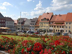 zabytków rynek miasta. Jest on otoczony domami z malowniczo