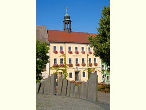 budynki ratusza oraz starego i nowego urzędu książęcego.